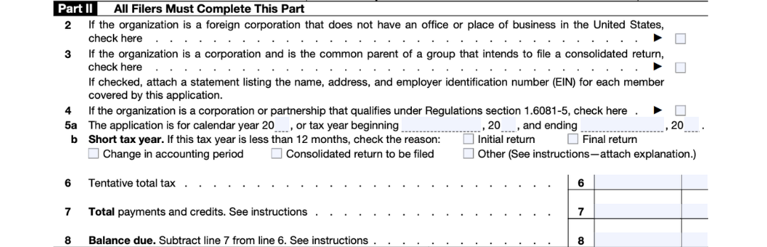 Part II- Lines 2-4: Checkboxes to check if your LLC is a: